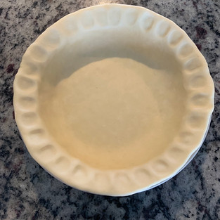 Roll out dough on a lightly floured surface using more flour as needed for rolling into approximately a 10 inch round. Place onto a 9 inch pie plate and trim edges until about one inch hangs over. Fold extra inch under dough in pie plate creating a solid rim.