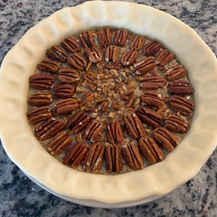 Bake pie about 90 minutes (you can place a foil tent over top of pie halfway through if nuts get too dark). Take off baking sheet and let pie cool and solidify for 4-6 hours.