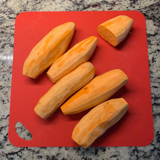 Cut sweet potatoes and cauliflower into small chunks and boil for 10-15 minutes until fork tender.